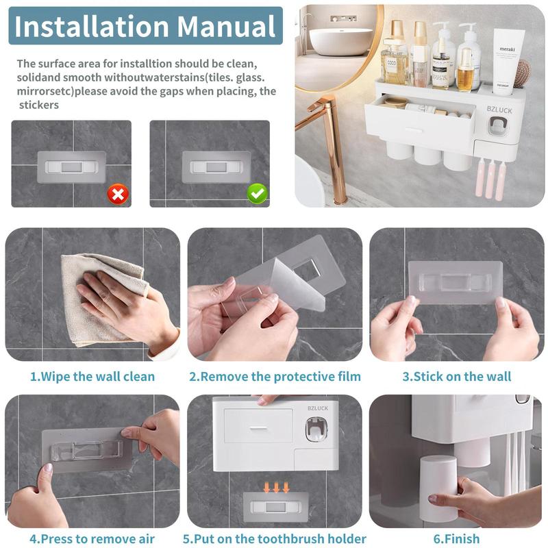 2-4 Cup Toothbrush Holders for Bathrooms - Wall Mounted with Toothpaste Dispenser - Cosmeticdrawe, Large Capacity Tray & Bathroom Accessories
