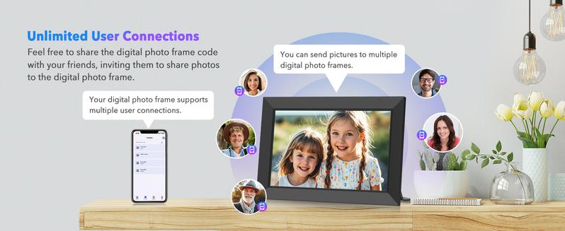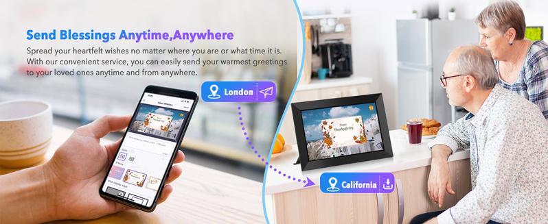 【Unlimited Users Connections & Send Wishes】With our electronic photo frames, You can transfer photos and videos with your relatives and friends to share happy moments. Additionally, our electric picture frame features a unique blessing-sending option, enabling you to send personalized greetings to your relatives and friends via the fr-ee Uhale APP for Christmas, Mother's Day, and Valentine's Day.