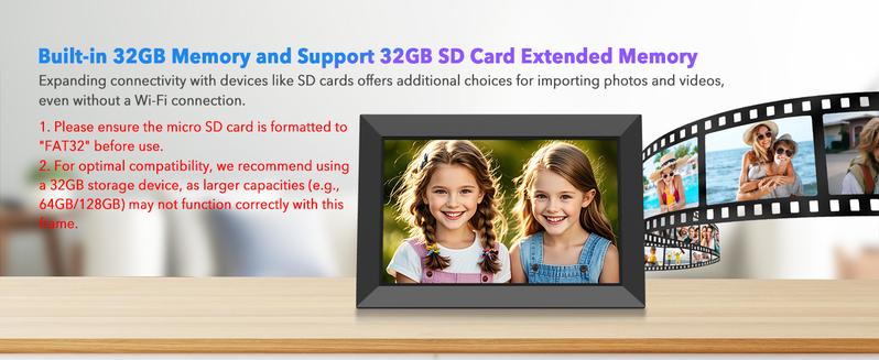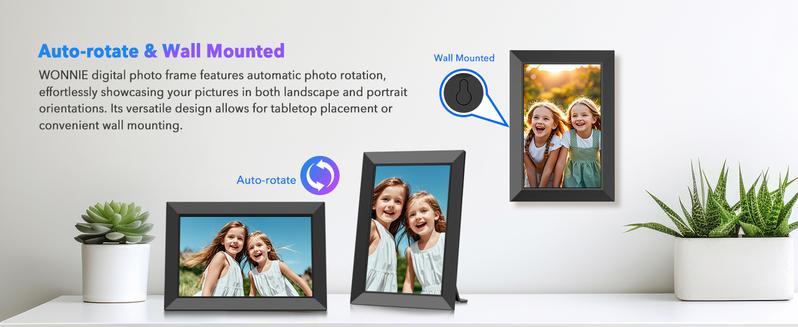 【Auto-Rotate, Large Storage】 Position the digital picture frame according to your liking, and the photo will automatically rotate to fill the entire frame without compromising image quality. Built-in 32GB storage (holds 50,000+ photos) and support up to 32GB Mirco SD card (Max: 32 GB), providing additional storage options. Additionally, support for Uhale PC web/Mirco SD card easy import or backup of photos and videos. Create a personalized photo album to make it easier for you to manage your photo