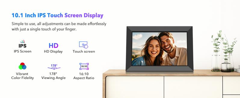 10.1 Inch Wifi Digital Photo Frame - HD IPS Touch Screen, 32GB Storage, Auto-Rotate, Instant Photo/Video Sharing - Ideal Christmas & Thanksgiving Gift, Perfect Home Decor