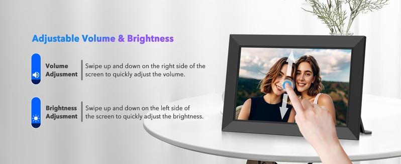 【10.1-Inch IPS HD Touchscreen】The 10.1-inch IPS HD touchscreen with a resolution of 1280*800 can display stunningly clear images and excellent color fidelity preserving the vivid and lovely details of every photo from any angle. You can easily browse photos, delete videos, or pause slideshow playback with just a touch of your finger. Adjusting the brightness is as easy as sliding your finger up or down on the touchscreen