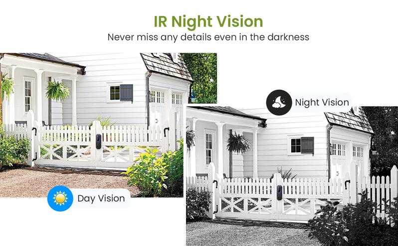 Advanced Night Vision Technology: Six infrared lights and a smart IR sensor deliver crystal-clear, high-resolution videos in low-light environments, 24/7.